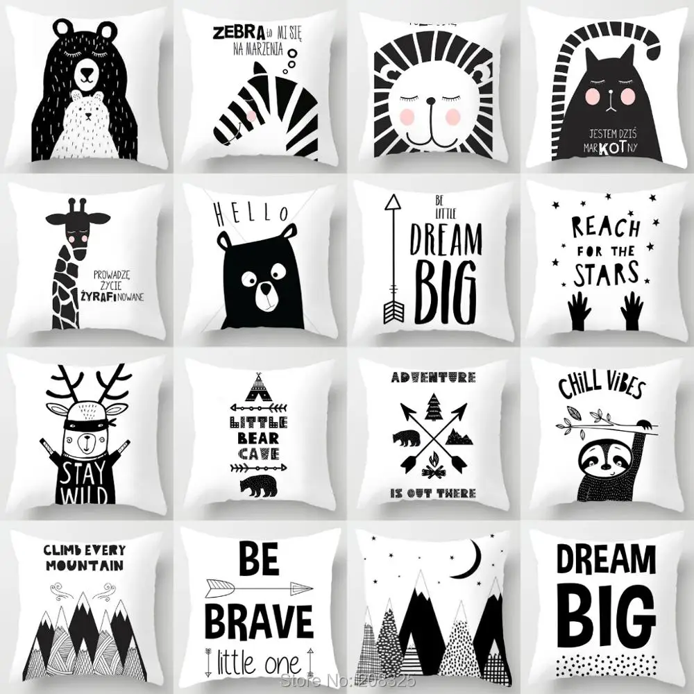 ZENGIA маленький медведь пещера черный белый чехол для подушки животные бросок подушки скандинавский домашний декор Геометрическая Подушка с изображением горы чехол