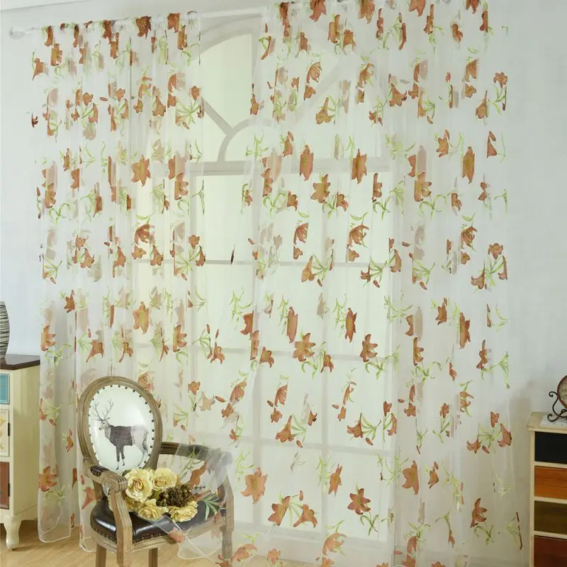 Главная Окно Шторы Sheer Вуаль Тюль балкон Кухня Printed Tulip узор Защита от солнца-затенение Шторы