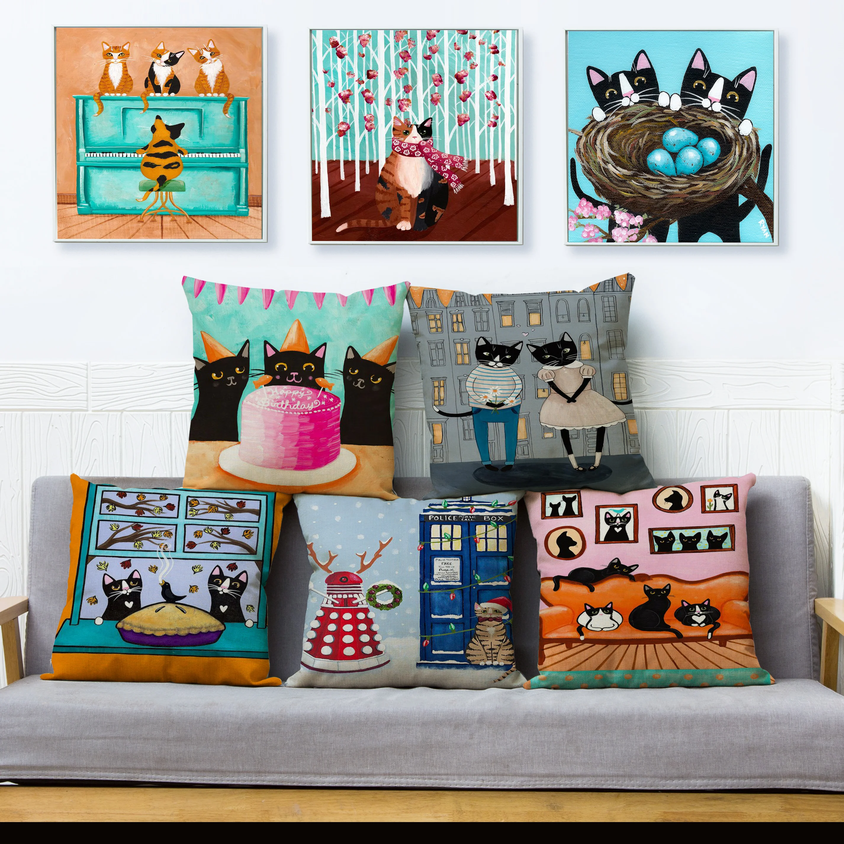 Милые Мультяшные коты чехол для подушки с принтом Ryan Conners забавный кот наволочки 45*45 льняные подушки Чехлы Диван декоративная подушка для до...