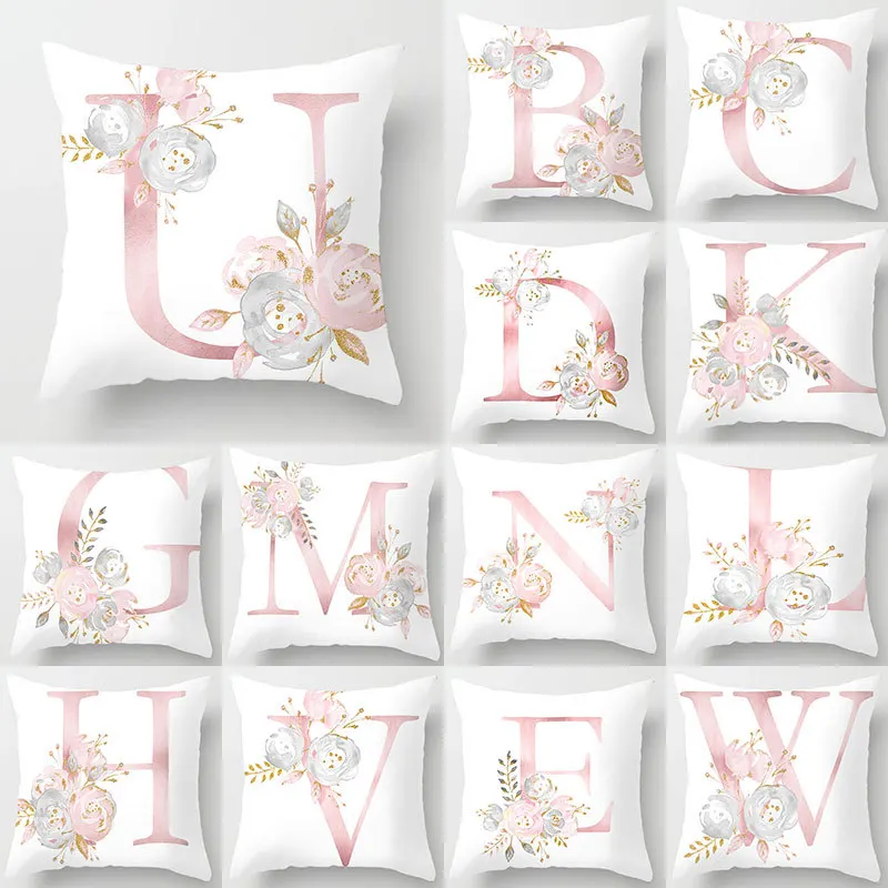 Наволочка для подушки с буквенным принтом, 45х45 см, английская Подушка с алфавитом, розовая Полиэстровая наволочка с цветочным принтом для дивана, дома, детской комнаты