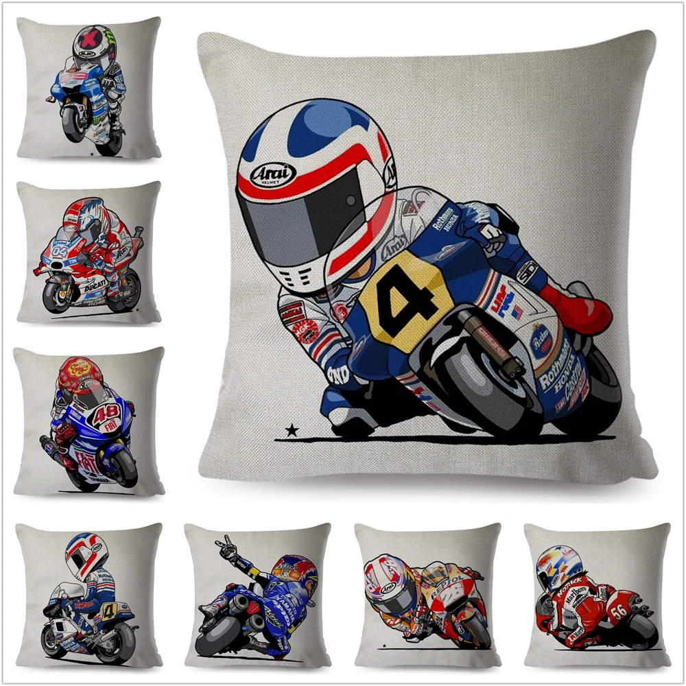 Мультяшный спортивный мотоцикл Cushon Обложка мобильный велосипед льняные наволочки на диван, домашний декор наволочка с изображением автомобиля 45x45 см