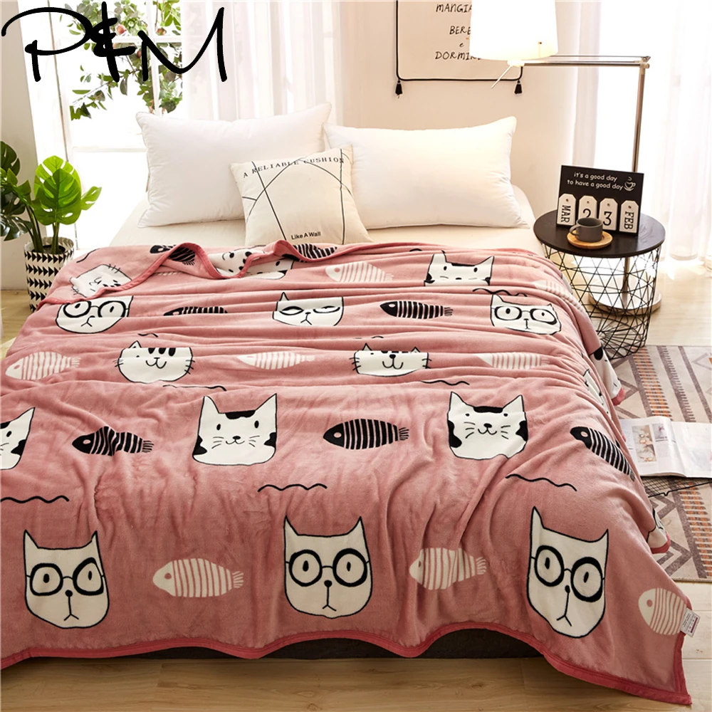 Папа и мима кошка и рыбки кости принт Лето пледы одеяла коралловый флис пледы multisize простыня многофункционал покрывало