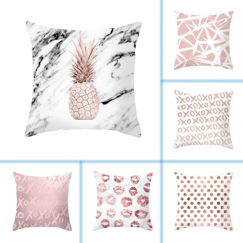 Mling 1 шт. 45x45 см Геометрическая розовая Золотая декоративная подушка персиковая кожа Диван Подушка для поясницы декоративная наволочка