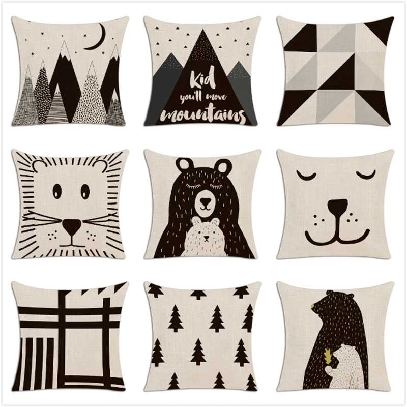 Детская простая наволочка, ручная роспись, Мультяшные животные, наволочка, чехол в скандинавском стиле, лесной медведь, книжка, чехол подушка с изображением горы, чехол