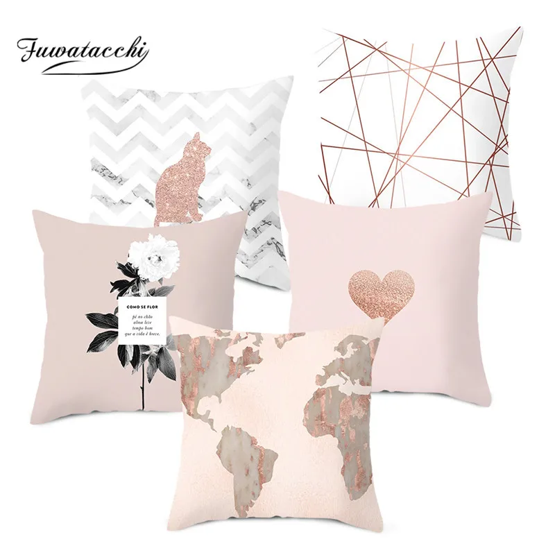 Fuwatacchi розовое золото геометрический чехол для подушки цветок декоративный чехол на подушки для на диван-кровать для дома полиэстер Наволоч...