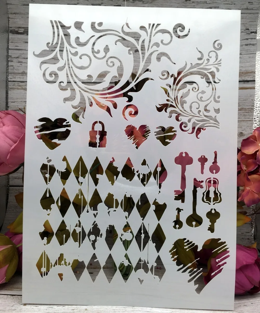 A4 Key Lock Сердце DIY наслоения Трафареты настенная живопись записки окраска тиснильный альбом декоративная открытка шаблон