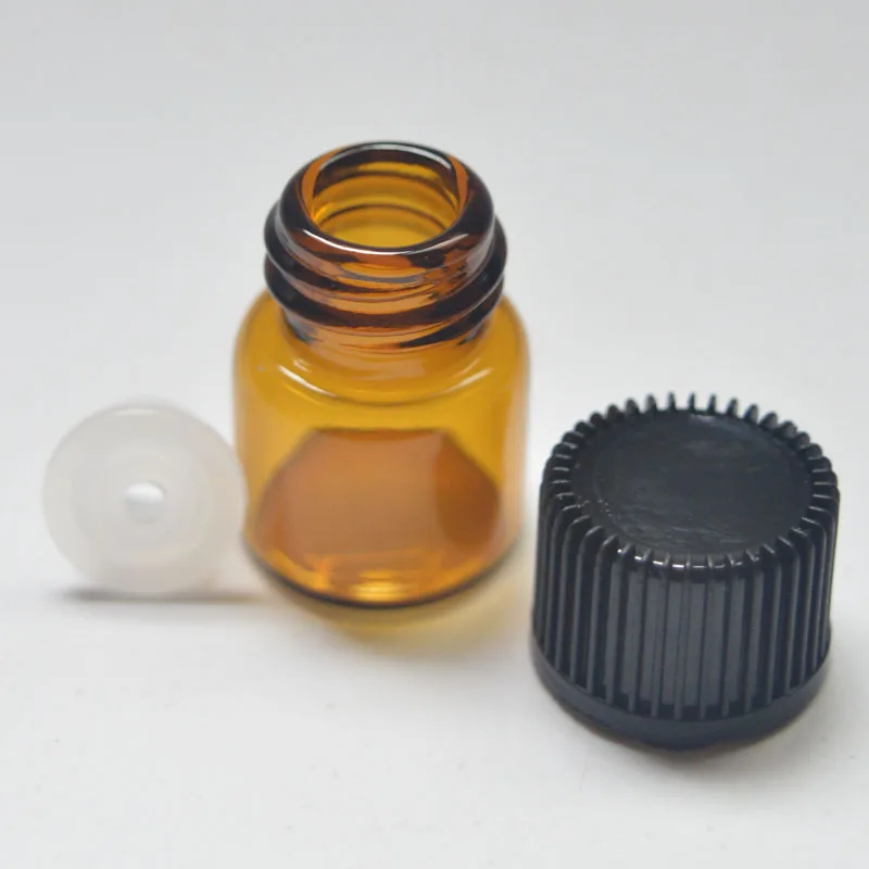 5 1 мл Мини Янтарный стекло бутылка с отверстием редуктор и кепки 1/4 Dram Малый эфирные масла флакон духов