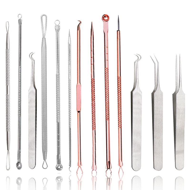 1 набор из нержавеющей стали прямые изогнутые иглы для удаления угрей зажимы Пинцет прыщей Комедон набор для удаления лица Очиститель