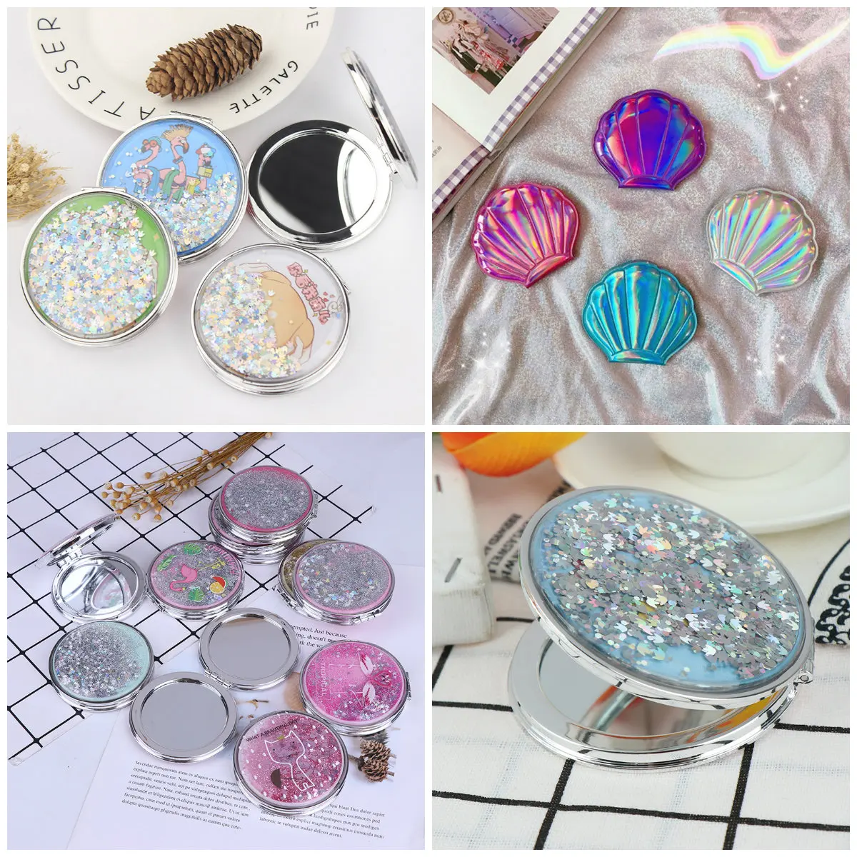 Мини-мультфильм ультра-тонкий макияж зеркало косметическое 4 размера макияж Карманный серебряный прямоугольник складной компактный склад...