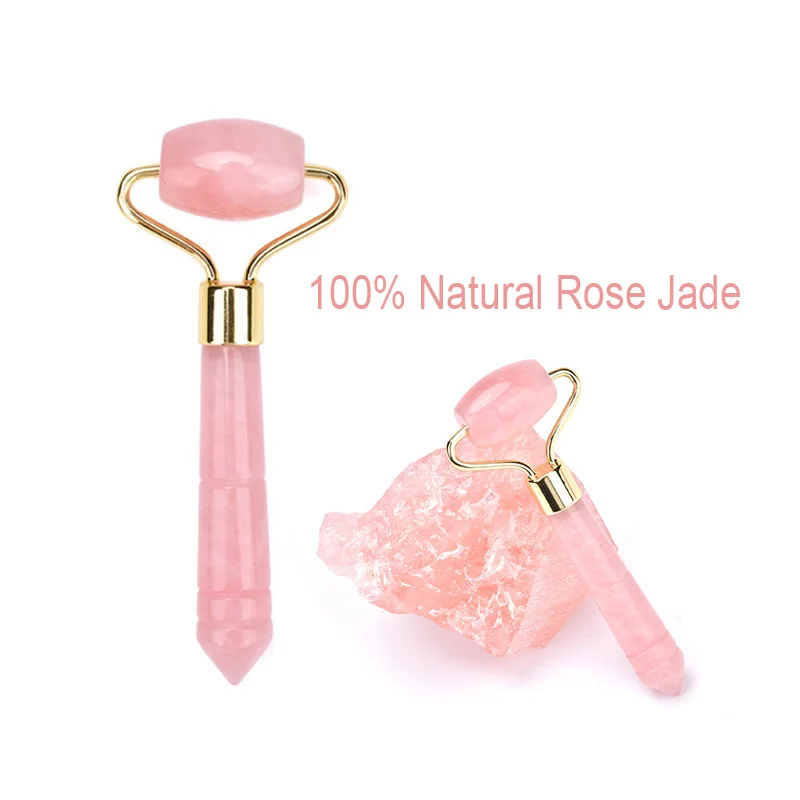Розовые кварцевые ролики для похудения лица мини массажер кристалл для лица нефрит красота Ролики Инструмент лифтинга лица нефрит портати...