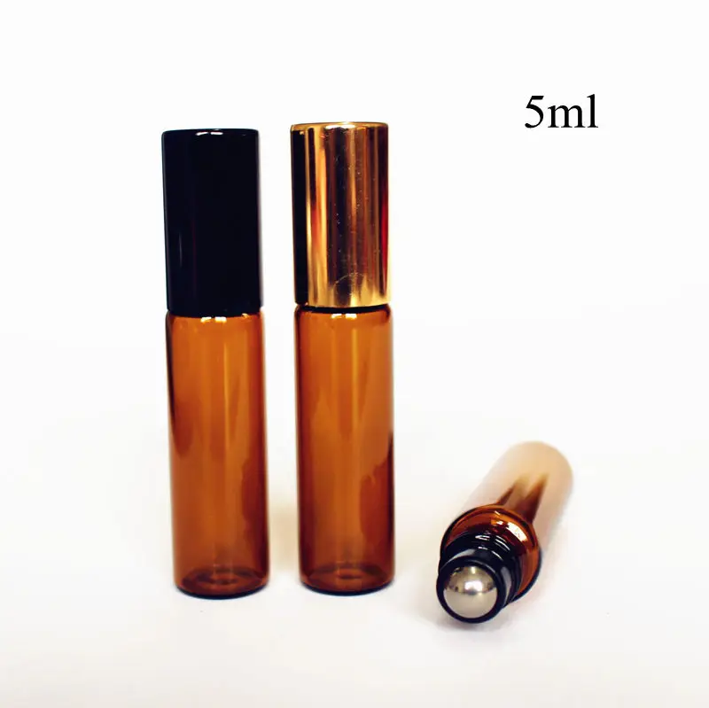 5 шт./упак. 5 мл Amber Стекло ролл на бутылку тонкий Стекло Эфирные масла бутылки с Металл ролика ароматерапия Стекло флаконы