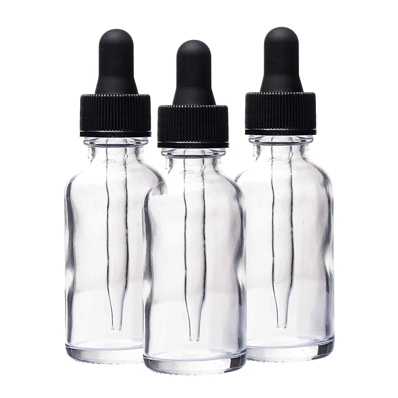 Прозрачный 30 мл стеклянная бутылка 1 унц. Ц. бутылка с защитой от детей кепки и стеклянные пипетки Бесплатная доставка
