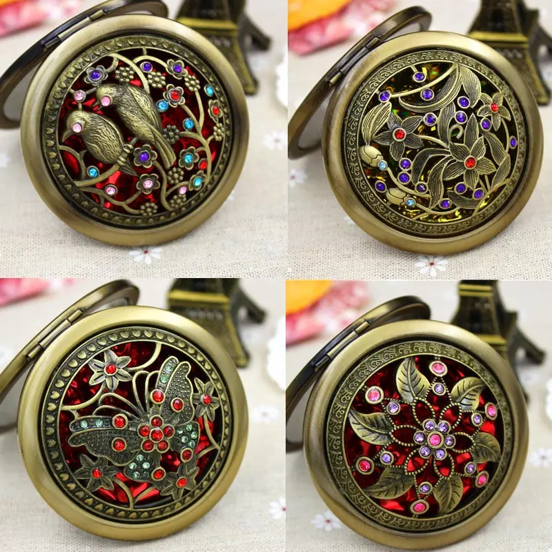 Складное карманное зеркало Mkaeup, круглое компактное Портативное двухстороннее винтажное полое зеркало для макияжа, женские зеркала для макияжа