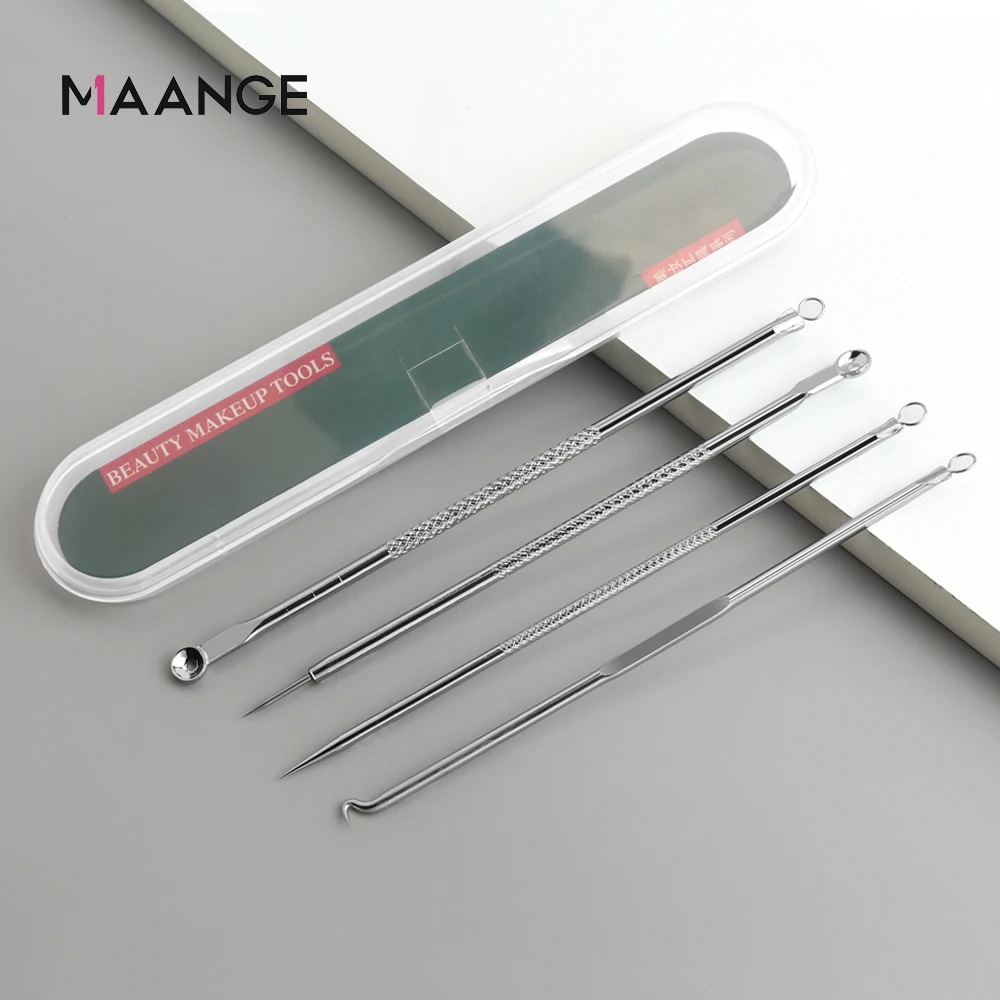 Набор для удаления черных точек из нержавеющей стали MAANGE 4 шт./компл., экстрактор акне, прыщей, иглы пинцеты, инструменты для ухода за кожей лица