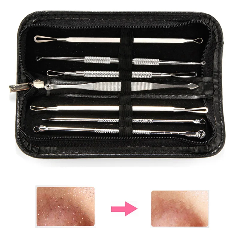 7 шт. нержавеющая сталь угрей Remover Tool Kit Комедон акне прыщей пятна экстрактор в черный горошек игла для удаления прыщей красота инструмент