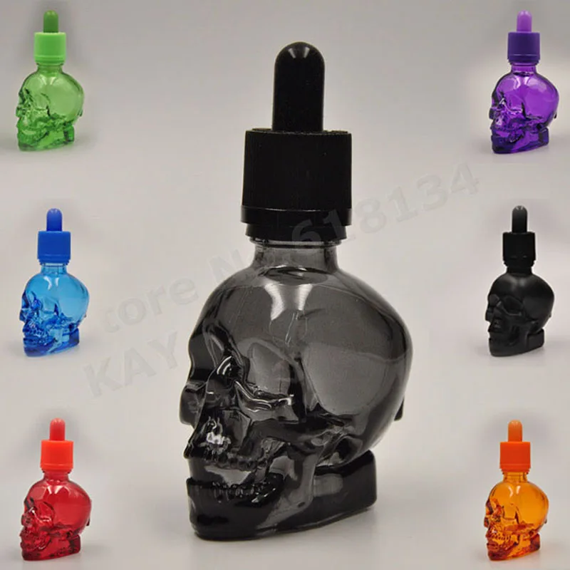 30 мл бутылка в форме черепа 30 мл матовое черный череп форма стеклянный флакон с пипеткой с защитой от детей