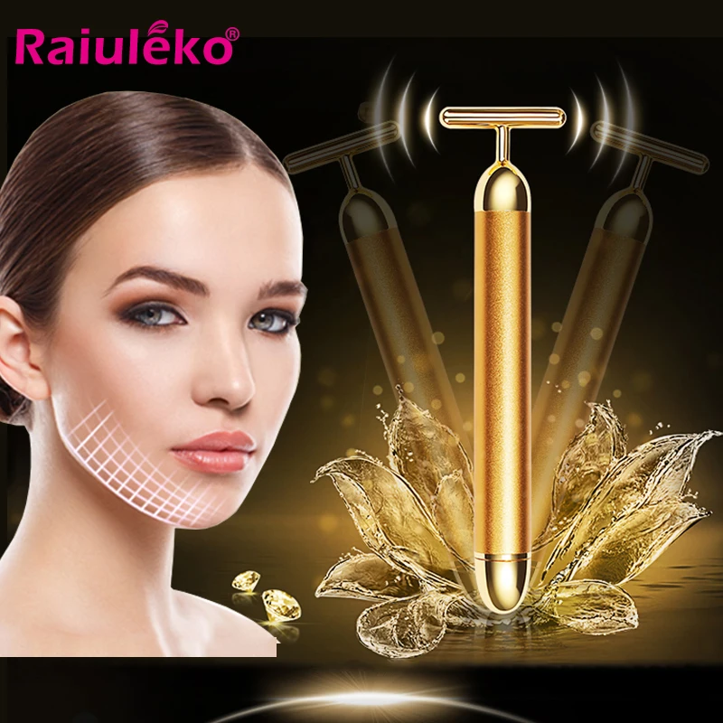 Ролик для похудения лица 24 К золотой цвет вибрации лицевой валик для красоты массажер палочка подтяжка кожи морщин бар