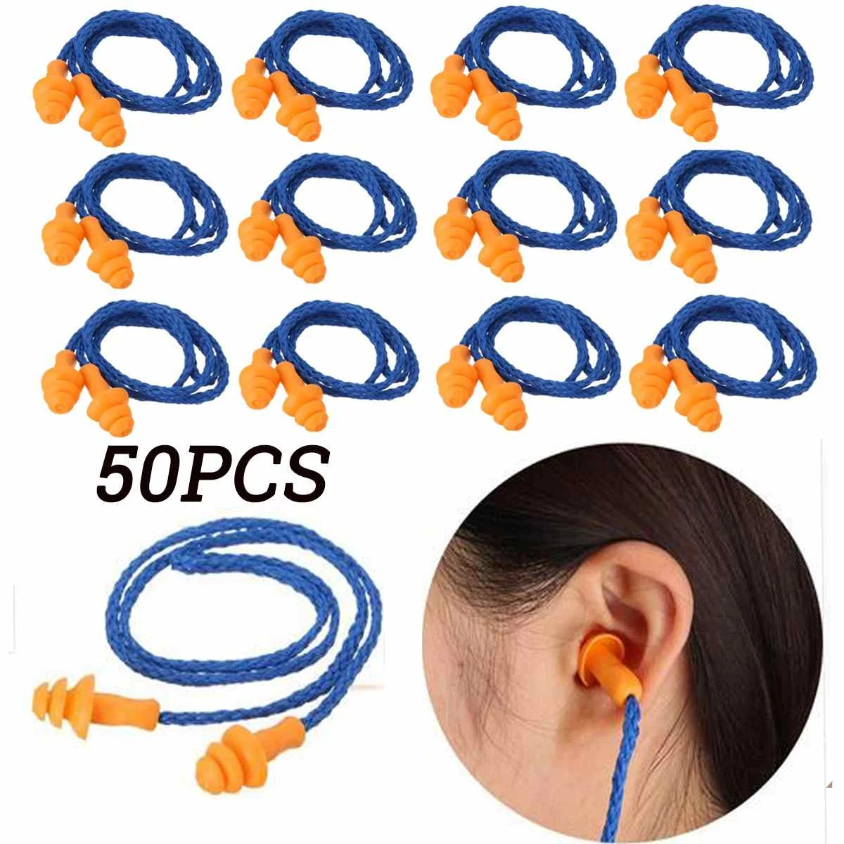 50 шт. Мягкие силиконовые, со шнуром, ушные заглушки, защита для ушей, многоразовые, защита для сна, шумоподавляющие наушники, наушники