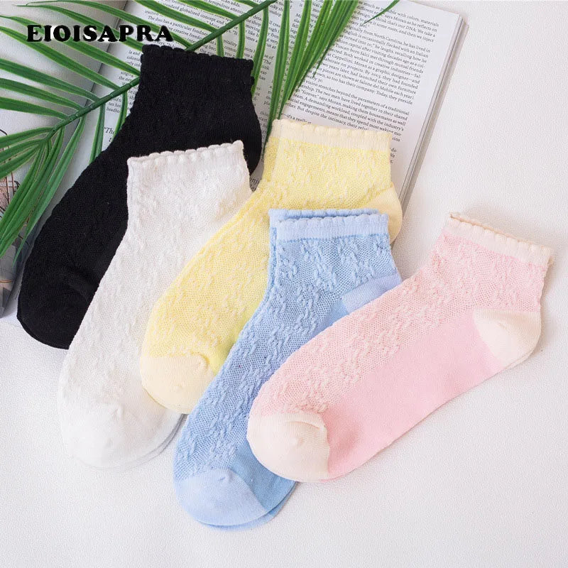 Весна Лето Kawaii женские носки-невидимки из хлопка сплошной цвет пузырь кружева японские стильные носки до щиколотки Женские повседневные Alcetines B003