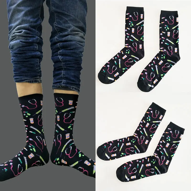 Зимние женские носки со стетоскопом и принтом шприц, мужские хлопковые Удобные Компрессионные носки, дышащие носки, новое поступление