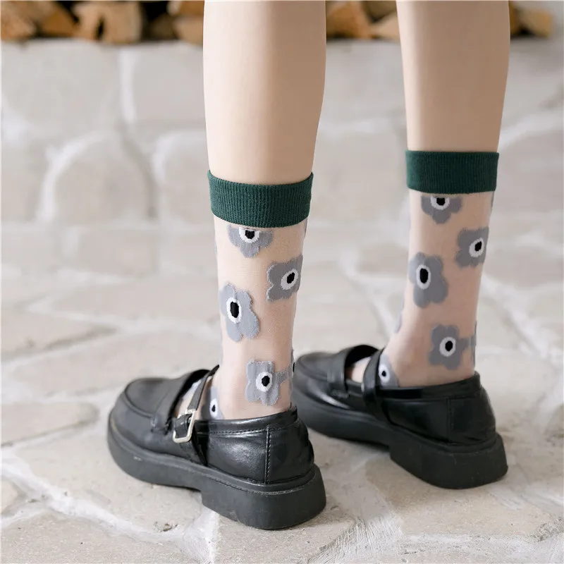 Весна 2020, тонкие прозрачные женские носки с цветочным рисунком, цветные повседневные женские мягкие удобные носки