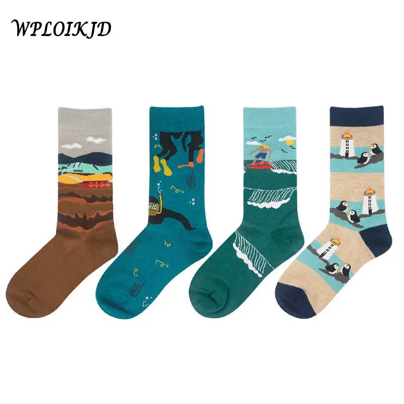 Носки унисекс с забавным принтом, 1 пара, хлопковые, всесезонные, цветные носки средней длины, женская уличная одежда