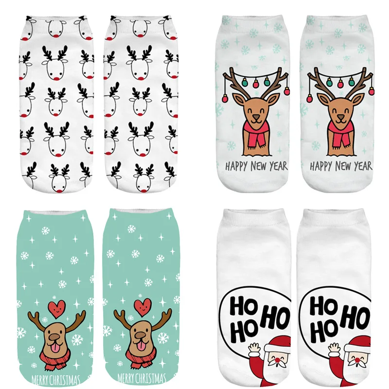 Рождественские носки с 3D принтом из мультфильмов для мужчин и женщин, прямые короткие носки с Санта-Клаусом, рождественская елка, Рождестве...
