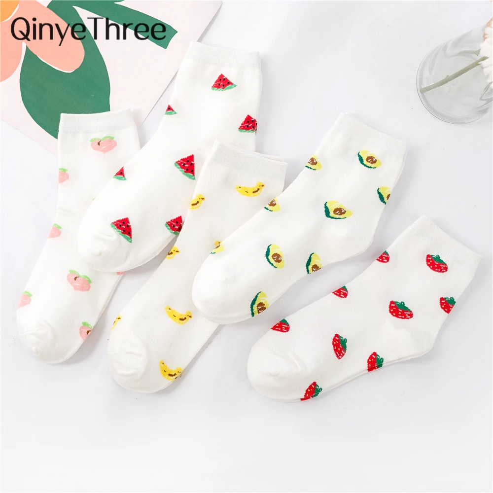 Милые Носки с рисунком фруктов, авокадо, банана, клубники, персика, арбуза, кавайные носки для девочек meias, корейский стиль, Harajuku, весна-лето, счастливые носки