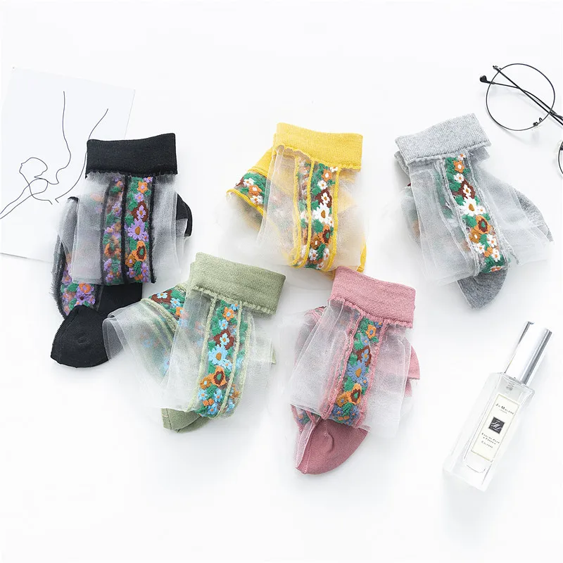 Весенние корейские стильные модные прозрачные женские носки с цветочным рисунком тонкие мягкие дышащие женские повседневные носки