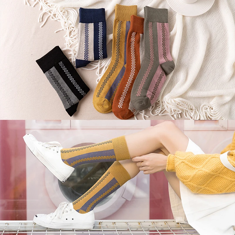 Jeseca/Хлопковые носки ярких цветов в студенческом стиле для школьников; сезон осень-зима; теплые женские носки в стиле Харадзюку; винтажные ул...