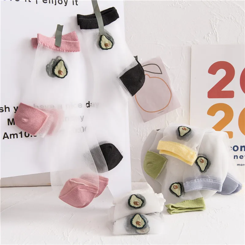 Оригинальные повседневные женские носки авокадо летние прозрачные дышащие ажурные носки для женщин удобные хипстерские носки Calcetines Mujer