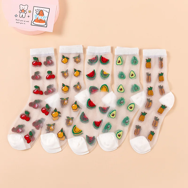 Летние женские носки авокадо ананас вишня Арбуз Лимон Kawaii Trasparente невидимые стеклянные шелковые тонкие дышащие длинные носки