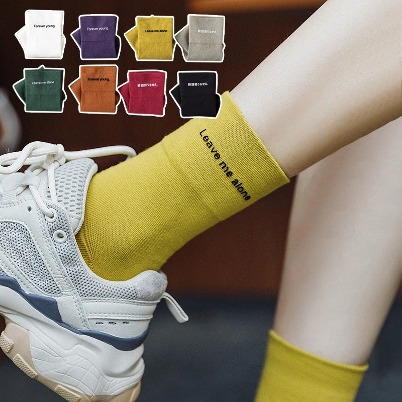 Женские модные носки 2019 Осень Новые модные стильные удобные счастливые студенческие одноцветные буквы Casua длинные носки женские