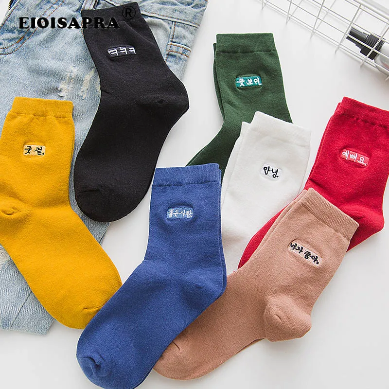 [EIOISAPRA] Хань вариант осень/зима хлопок вышивка Для женщин носки Harajuku Карамельный цвет Цвет ful противоскользящие Moda Mujer 2018 Sokken