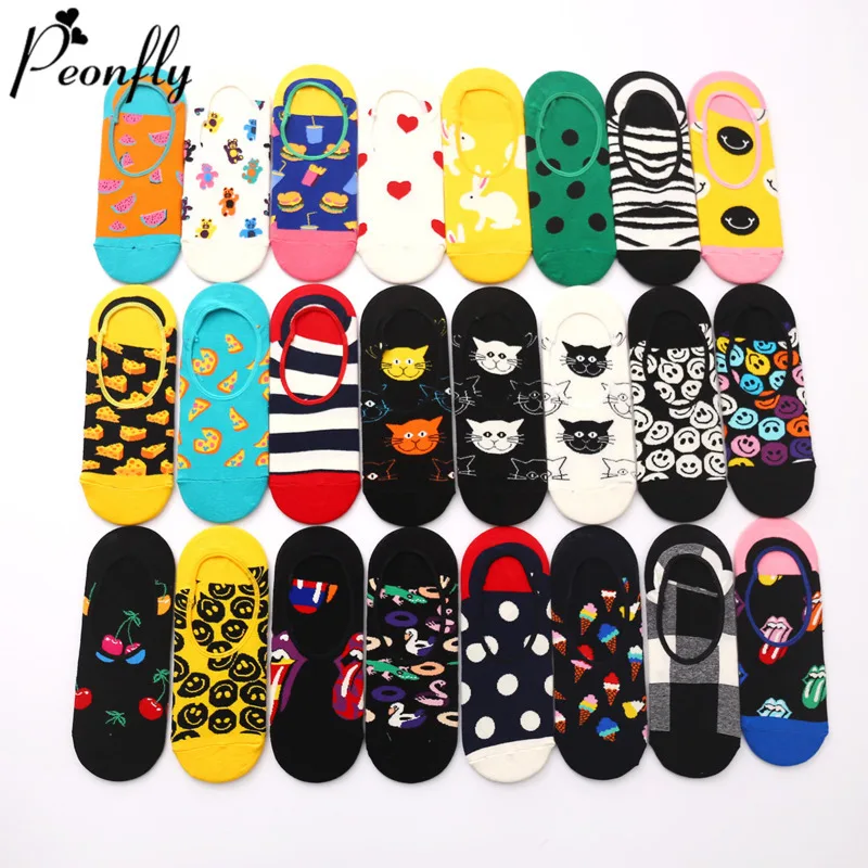 PEONFLY/женские носки с милым мультяшным котом, дышащие мягкие носки до щиколотки для мужчин, новинка 2020, весенне-летние креативные Невидимые Носки с рисунком