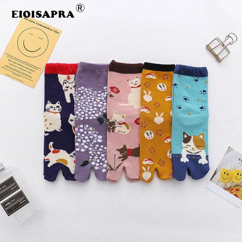[EIOISAPRA] Креативные женские носки в японском стиле Харадзюку С героями мультфильмов; сезон осень-зима; милые носки с двумя пальцами; носки с из...