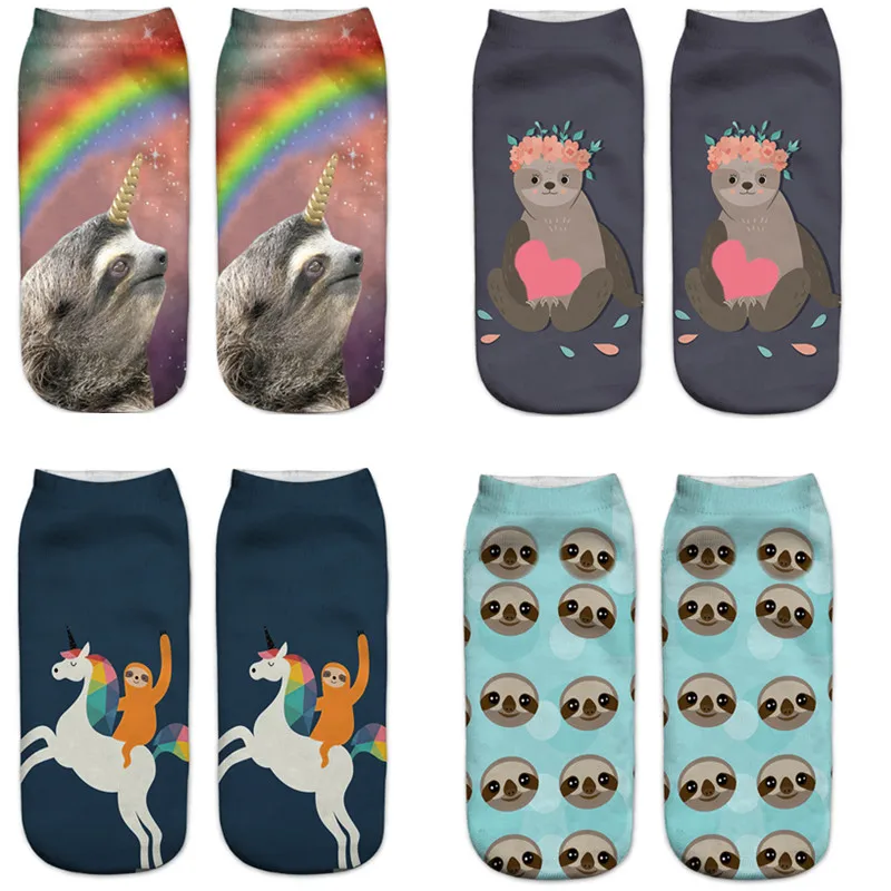 Женские/мужские носки с объемным принтом ленивого/единорога, летние и осенние забавные короткие носки по щиколотку