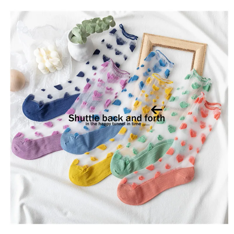 2020 прозрачные женские носки в Корейском стиле с сердечками, тонкие дышащие удобные женские носки по щиколотку, оригинальные модные носки