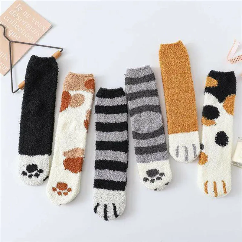 Зимние милые плотные теплые носки с кошачьими когтями пушистые коралловые флисовые Носки-тапочки для сна женские плюшевые теплые зимние Чулочные изделия, 1 пара носков
