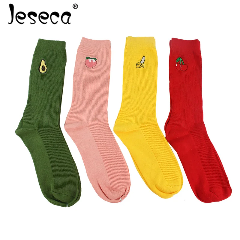 Jeseca/новые милые Мультяшные фрукты, принт авокадо, банан, вишня, персик, каваи, носки для девочек Harajuku, вышивка, ворс, кучи, забавные носки