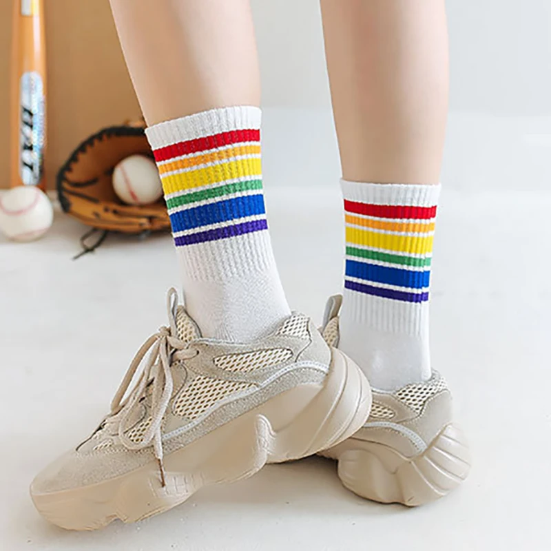 Длинные носки Радужный цвет уличная мода корейский носок Рождество хлопок милые носки Skarpetki Calcetines 2019 новые Sokken черный/белый