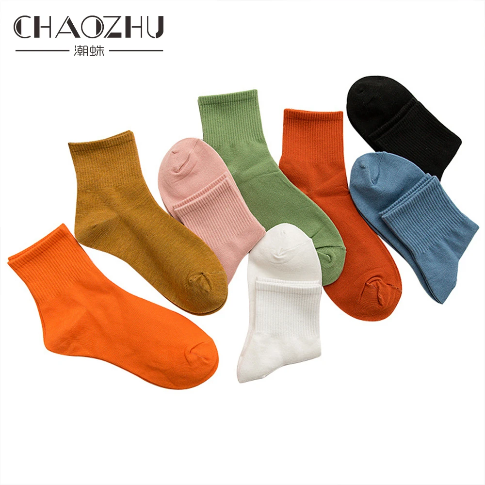 CHAOZHU/Новинка; Женские однотонные модные яркие уличные Носки ярких цветов; повседневные хлопковые носки для девочек; 200 игл