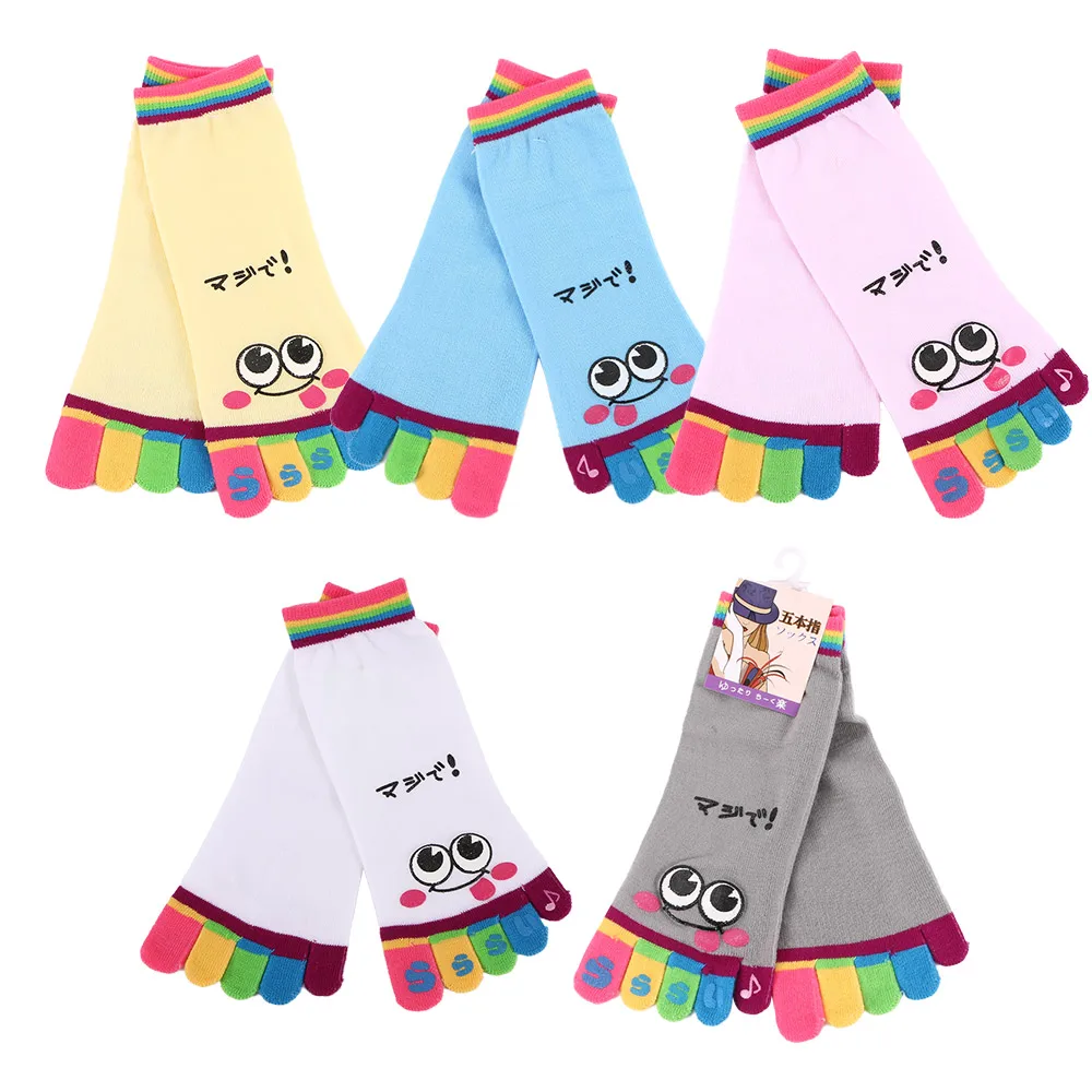 Лидер продаж для девочек со смайликом, одежда для сна с милыми и забавными пять тренер пальцев Радуга Цвет Носок, высота до щиколотки, маленький Носки хлопковые носки женские Носки