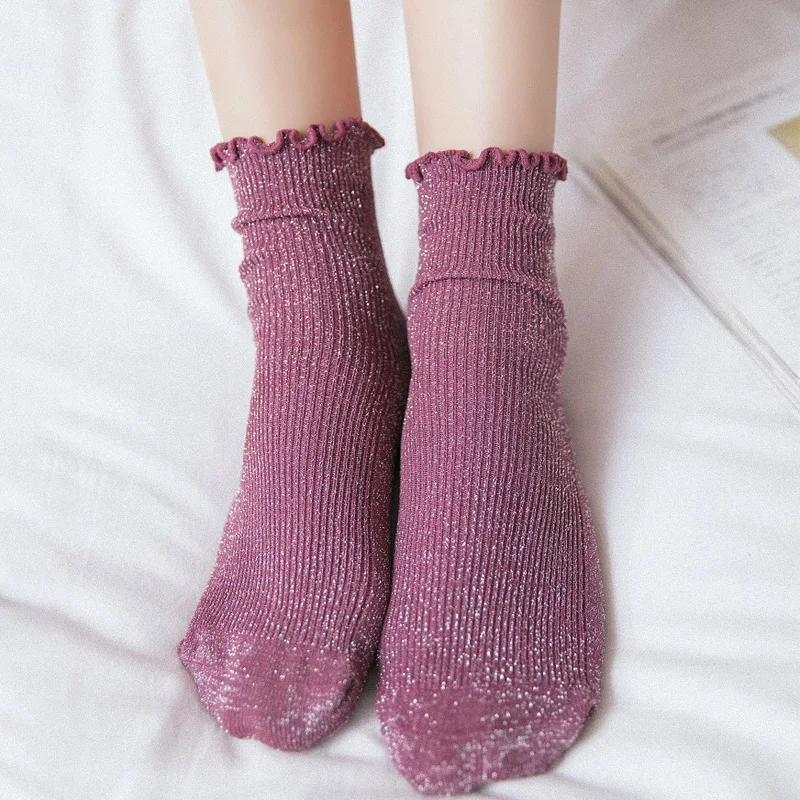 Британские винтажные блестящие женские носки из хлопка женские Повседневные базовые блестящие ребра поверхность милые носки для девочек л...
