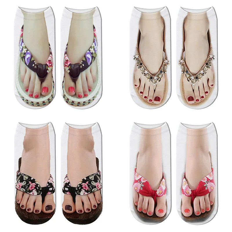 Новинка; женские пляжные шлепанцы с 3D принтом; Короткие Носки с рисунком; летние женские сандалии в стиле каваи; носки до лодыжки
