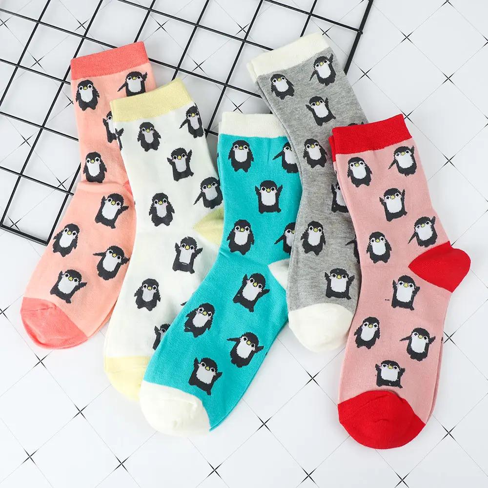 1 пара, модные женские мягкие хлопковые носки с изображением пингвина из мультфильма, короткие носки, женские теплые удобные носки на осень и зиму, забавные носки