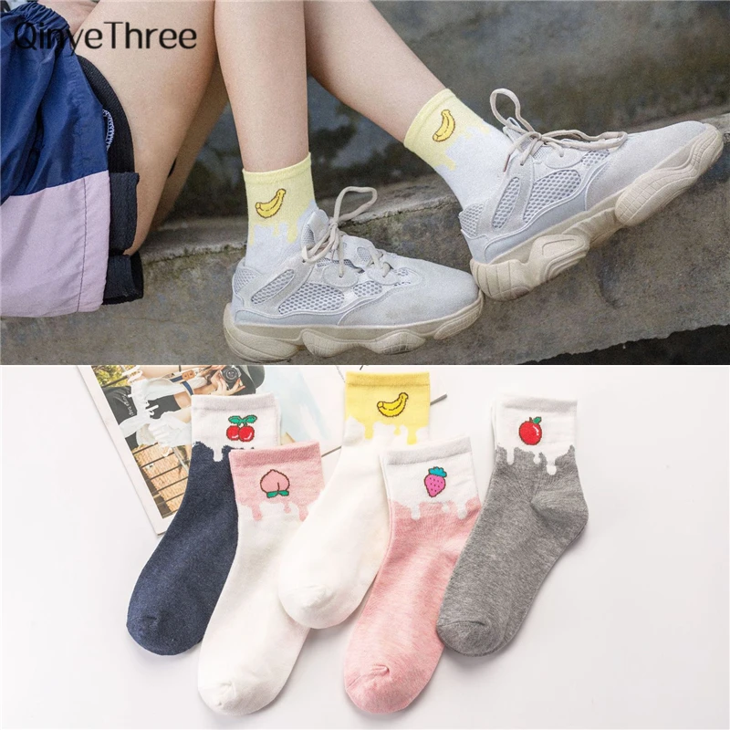 Новая женская мода летом свежие фрукты art Носки мягкий теплый хлопок носки без пятки Harajuk банан Персик Яблоко клубника вишня Сокс