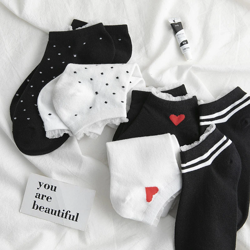 Японский стиль, кружевные женские носки в горошек с сердечками, оригинальные повседневные короткие носки для женщин, дышащие удобные носки, трендовые