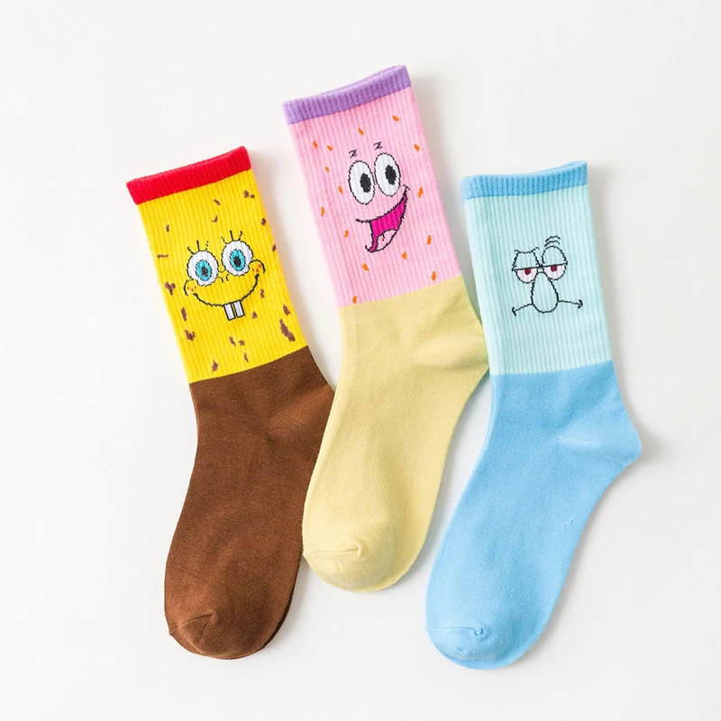 Женские забавные Женские носочки в стиле Харадзюку с милым мультяшным принтом, теплые цветные студенческие носки средней длины, уличный По...