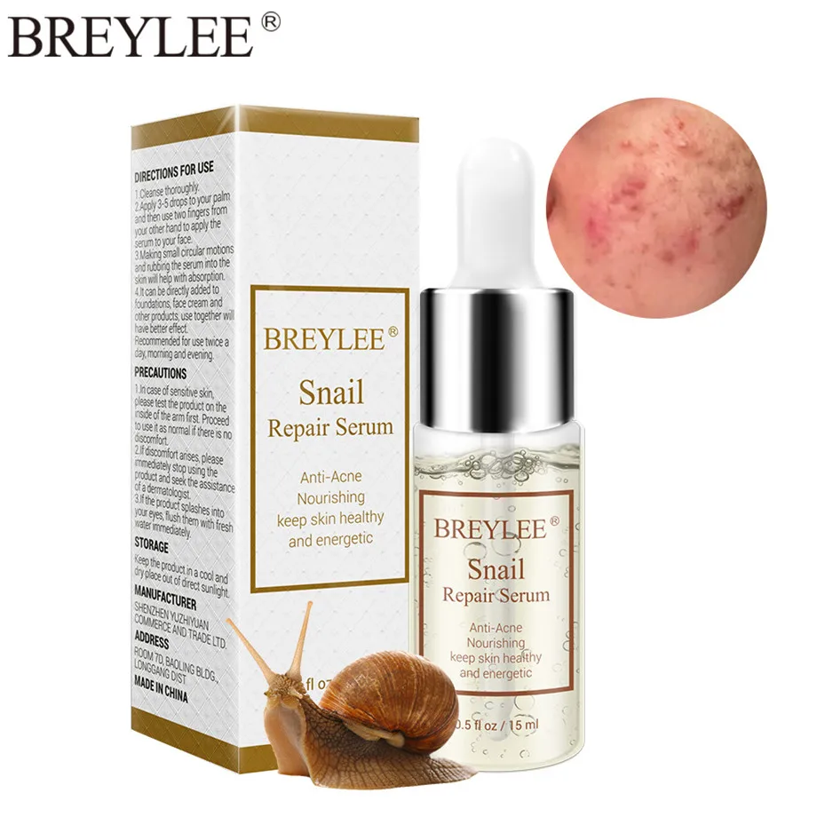 BREYLEE улиточная Сыворотка против акне омоложение эссенция шрамы лечение акне жидкий уход за кожей лица питательный увлажняющий ремонт